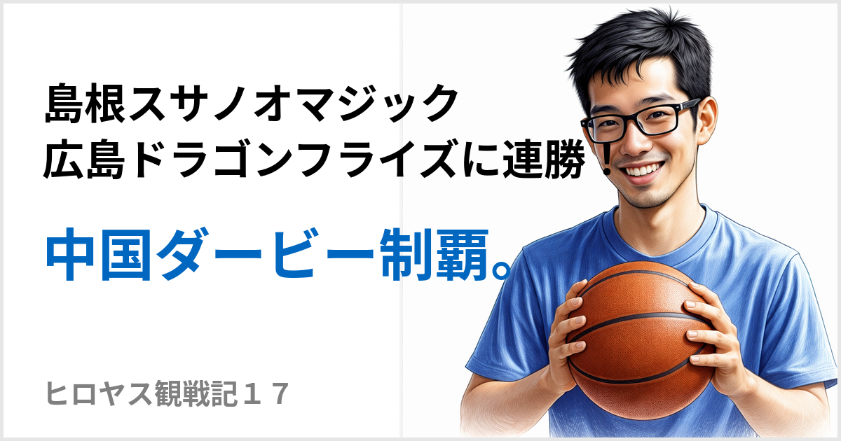 広島サンプラザホールで開催された第33節、「中国ダービー」において、「広島ドラゴンフライズ」対「島根スサノオマジック」2戦連続でものすごい接戦に勝利をし、アウェイの地で価値ある2連勝を飾りました。ぼくヒロヤスは、同じ中国地方の鳥取県からDAZN(ダ・ゾーン)の配信でこの接戦を脳性まひの特徴である、筋緊張が入っても、そっちのけで観ていました。