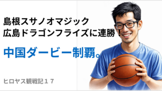 バスケットボール 【ヒロヤス観戦記17】島根が広島に今シーズン最後の中国ダービーに連勝 島根スサノオマジック広島ドラゴンフライズにアウェイで連勝広島サンプラザホールで開催された第33節、「中国ダービー」において、「広島ドラゴンフライズ」対「島根スサノオマジック」2戦連続でものすごい接戦に勝利をし、アウェイの地で価値ある2連勝を... 2026.04.22 バスケットボール